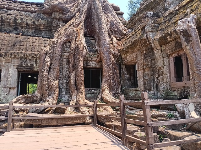 Auch ohne in Kambodscha gewesen zu sein, kommt einem der Ta Phrom Tempel bekannt vor: Verwitterte Ruinen werden von gewaltigen Würgefeigen (Banyan) und Kapokbäumen (Trettasee) nach und nach wieder von der Natur in Beschlag genommen. Dieser Dschungeltempel bildete eine ideale Kulisse für den Film „Tomb Raider“. Die Einnahmen der vorsichtig durchgeführten und entsprechend aufwändigen Filmdreharbeiten kamen dem Erhalt der Tempelanlagen zu Gute