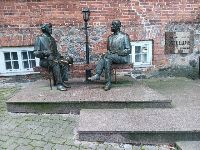 Eine Skulptur würdigt zwei Philosophen bzw. Dichter mit Namen Wilde, einer davon der bekannte Oscar Wilde, der andere der in Tartu lebende Dichter Eduard Vilde (im Original so geschrieben)
