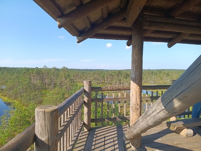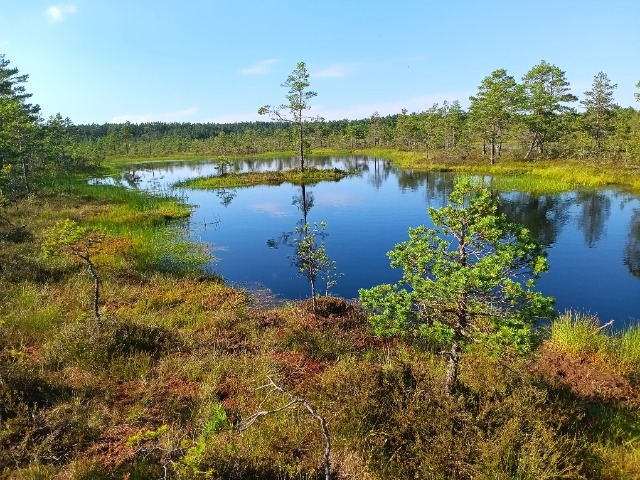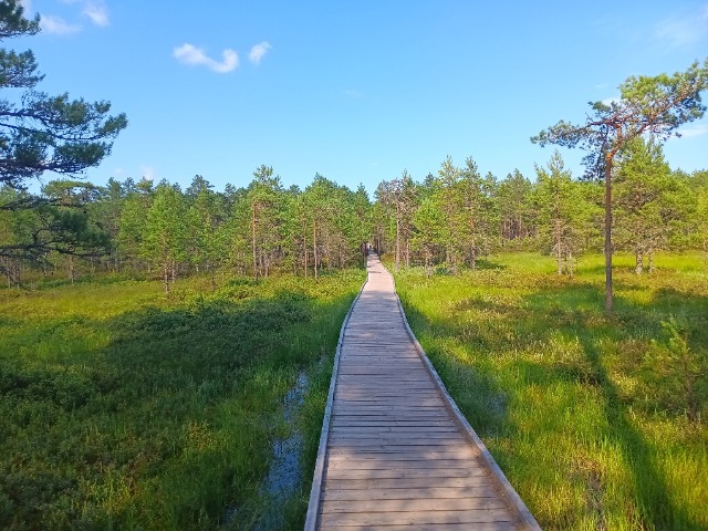 Ein Weg von ca. 1/2 Stunde mit Vogelgezwitscher führt vom Parkplatz durch Gräser und Zwergkiefern zu einem ersten Stopp in der Moorlandschaft von Laheema, wie sie typisch für Estland ist. Immerhin 1/5 der Fläche des Landes sind Moore oder moorähnliche Natur
