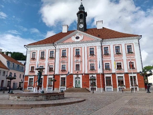Am oberen Ende des zentralen Marktplatzes thront das sanierte Rathaus aus dem Jahr 1789, ein farbenprächtiger Bau der u.a. als Gericht dient und seit über 100 Jahren auch eine Apotheke beherbergt. Bei 100.000 Einwohnern kann man das sicher von einer schlanken Verwaltung sprechen, auch ein Beleg für den hohen Grad an Digitalisierung im Land