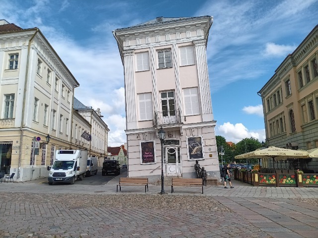 Eines der bekanntesten Motive in Tartu ist das schiefe Haus am unteren Ende der zentralen Fußgängerzone, in der sich zig Restaurants aneinander reihen. Die Ursache für die mittlerweile stabilisierte Schieflage des Gebäudes ist der morastige Untergrund, in den die Pfähle, auf denen ein Teil des Hauses steht, eingesunken sind. Der andere Teil des Hauses soll auf Felsen bzw. Steinen der (ehemaligen?) Stadtmauer stehen