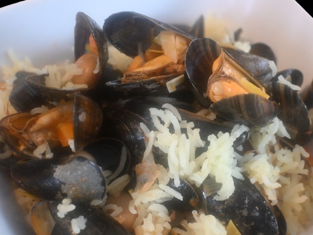 Muscheln, Bohnen und Wintergemüse mit fluffigem Basmatireis (home made)