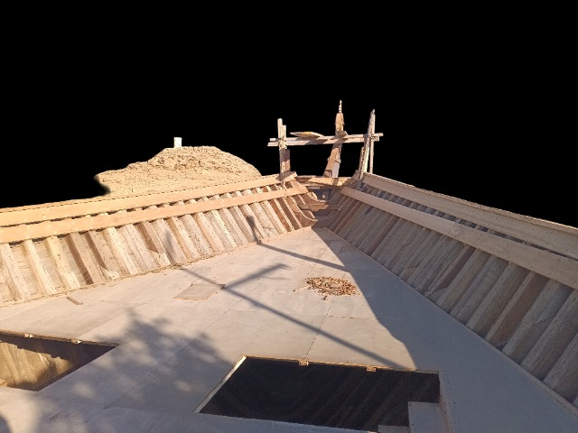 Mit traditionellen Materialien in Handarbeit gebaute Dhow in Werft, Sur, Oman