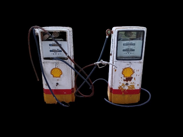 „Zeitgenosse“ des Oldtimers, Tankstelle im königlichen Palast, Luang Prabang, Laos